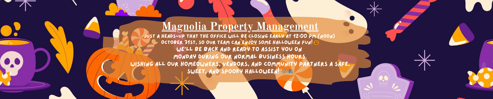 Please be advised that the office of Magnolia Property Management will be closed on Monday, October 13th in observance of Columbus Day.