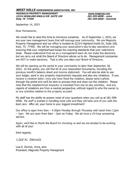 West Hills POA Certificate